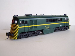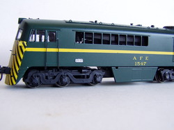 Locomotora GE serie 1500 de AFE (Uruguay) pintada con el esquema actual (2009) verde ingles con el cebrado en amarillo y negro de alta visibilidad. Equipada con chasis marca Kato (Japon) con motor de cinco polos, doble volante de inercia, toma de corriente en todas sus ruedas, luces direccionales de bajo voltaje. Excelente y unico modelo. Por consultas sobre precio, disponibilidad y fecha de entrega por favor envienos un email, muchas gracias.